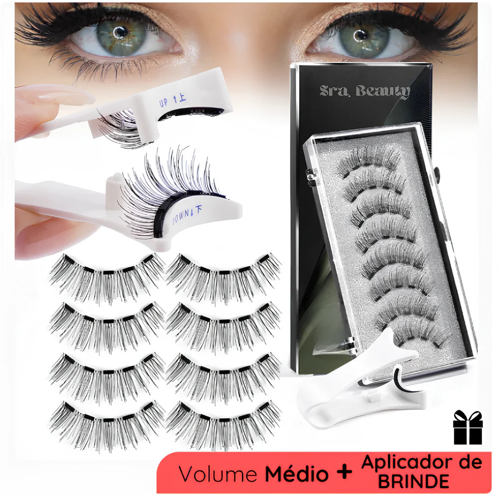 2 Pares de Pestanas Magnéticas Reutilizáveis (8 unidades no total) + 1 Aplicador + Caixa de Armazenamento.